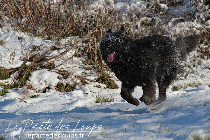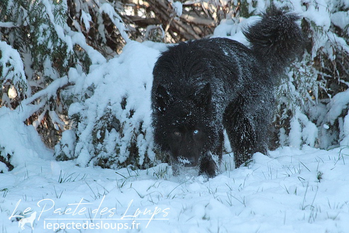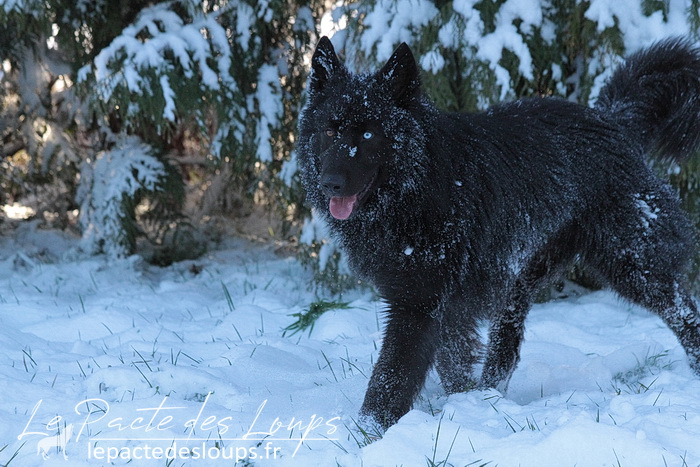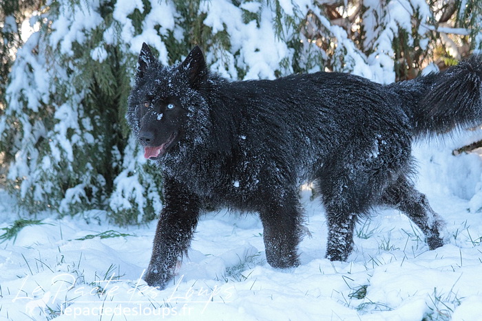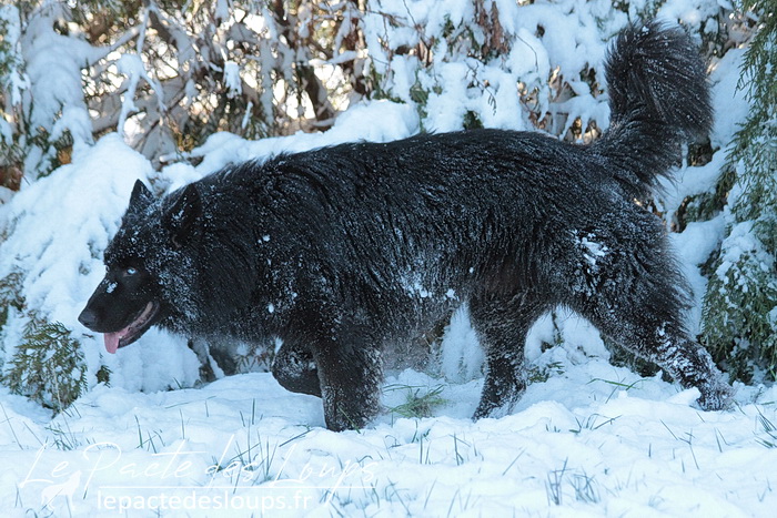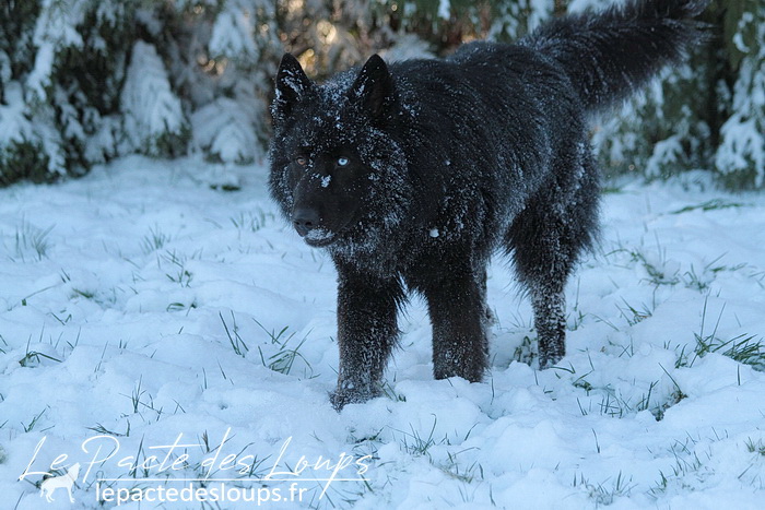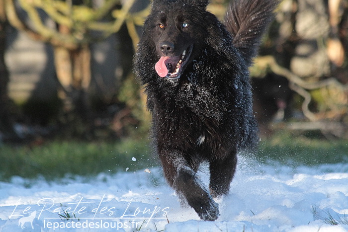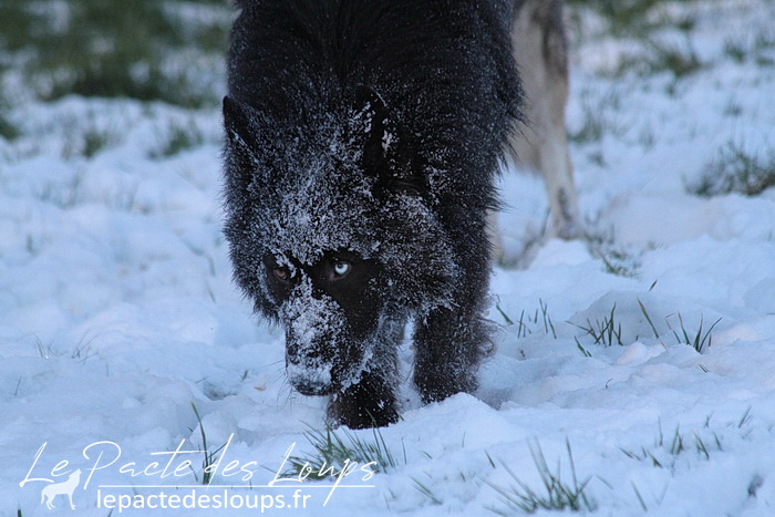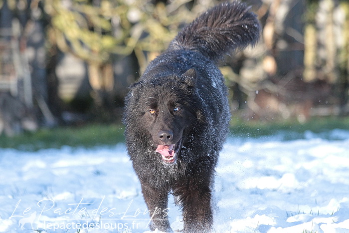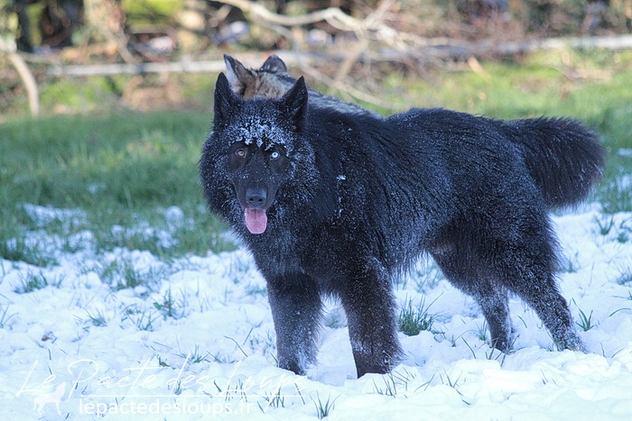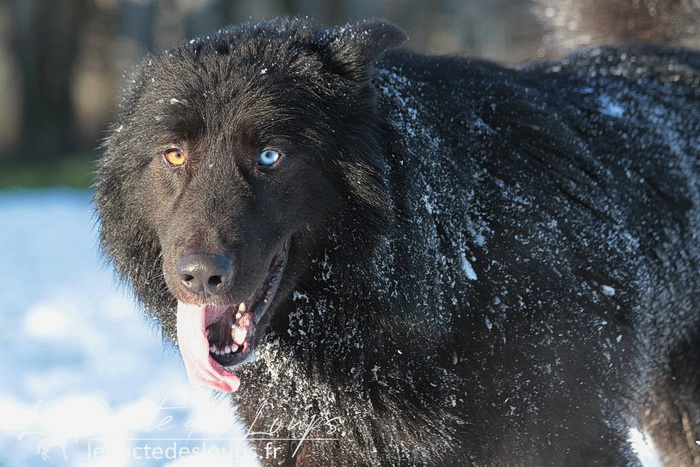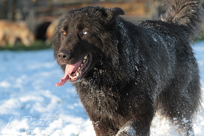 Avec son oeil de glace et son oeil de feu, sa robe noir charbon, sa grande stature, sa forte ossature et ses dents de loup-garou, il est particulièrement impressionnant.
