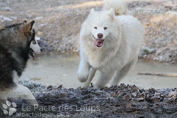 Blanche s'entend bien avec tout le monde, humains et chiens.