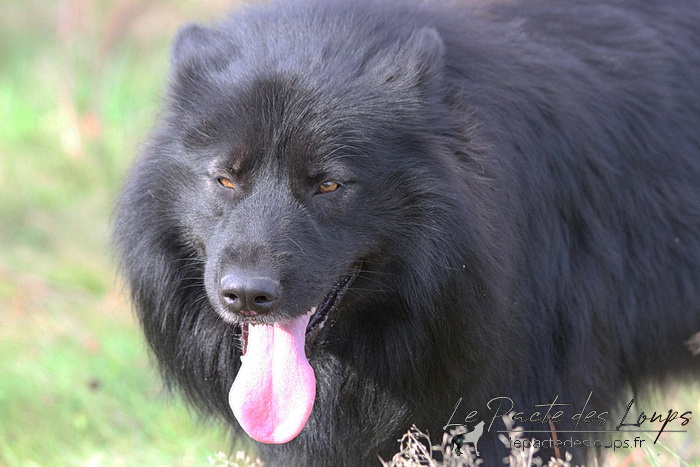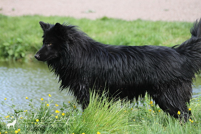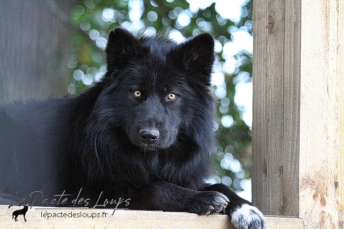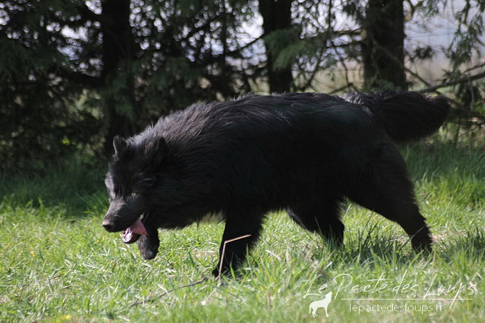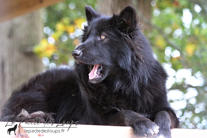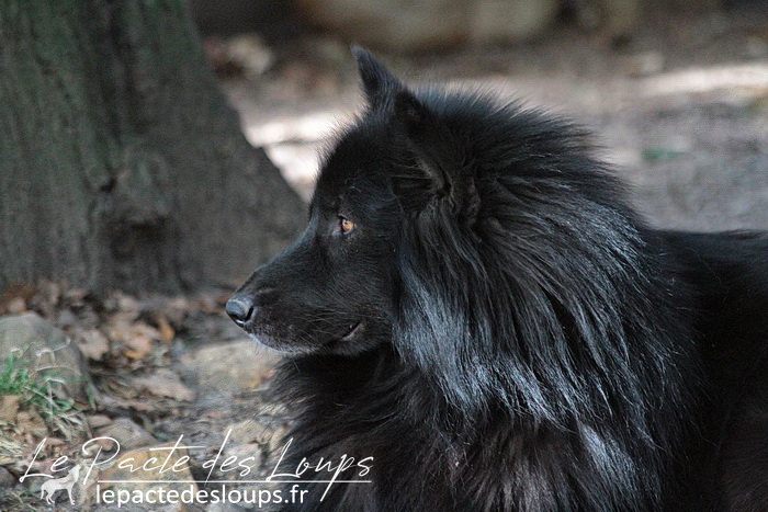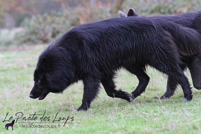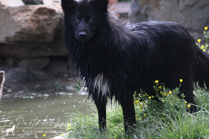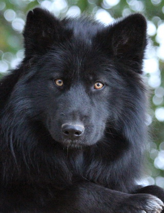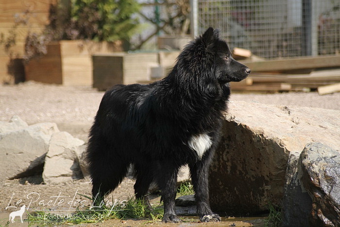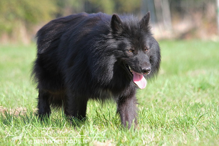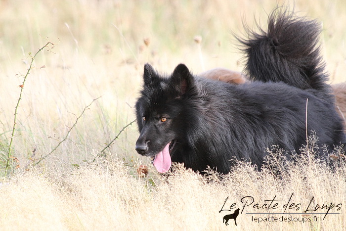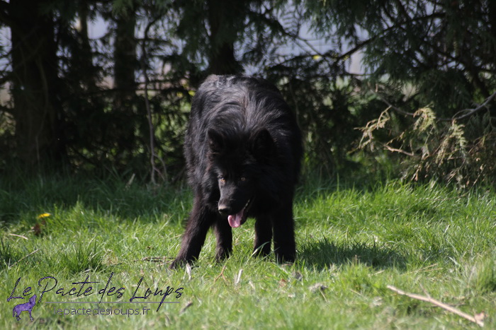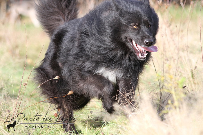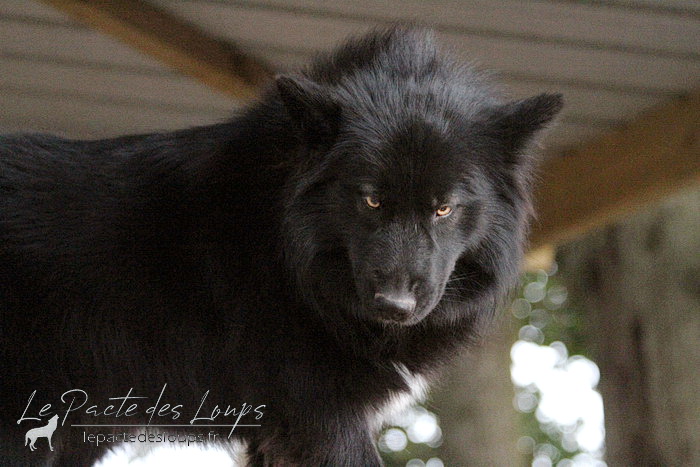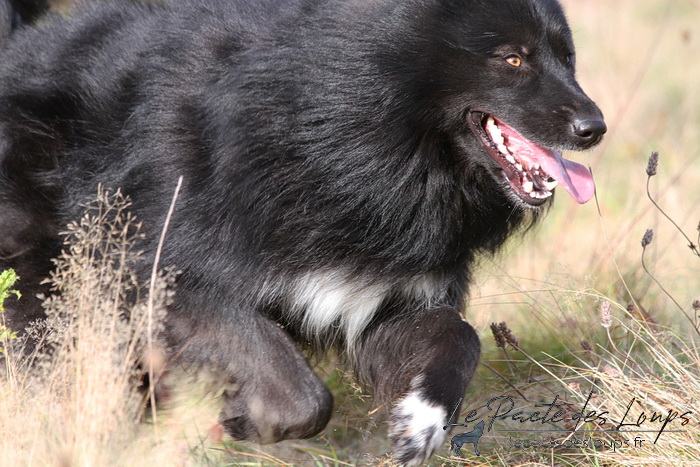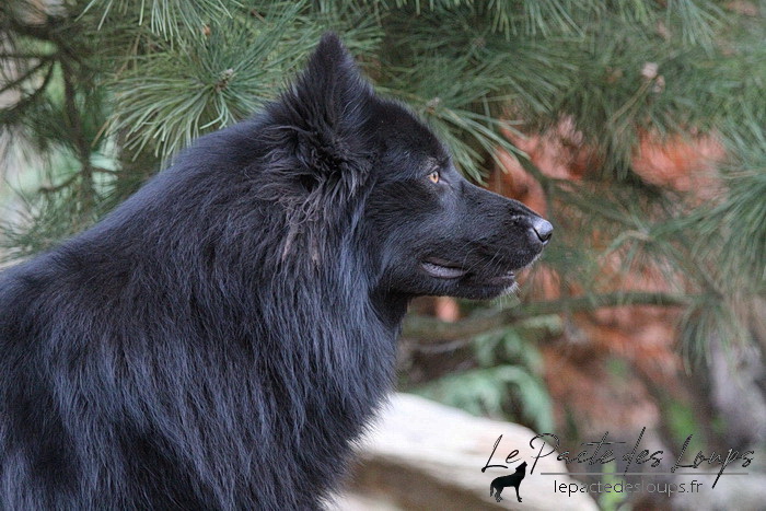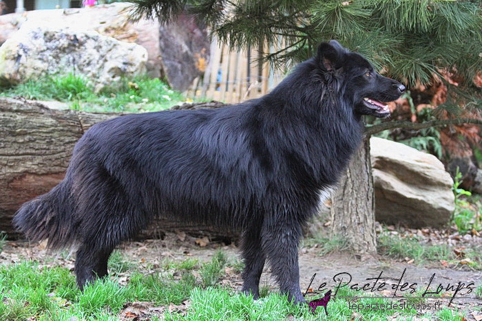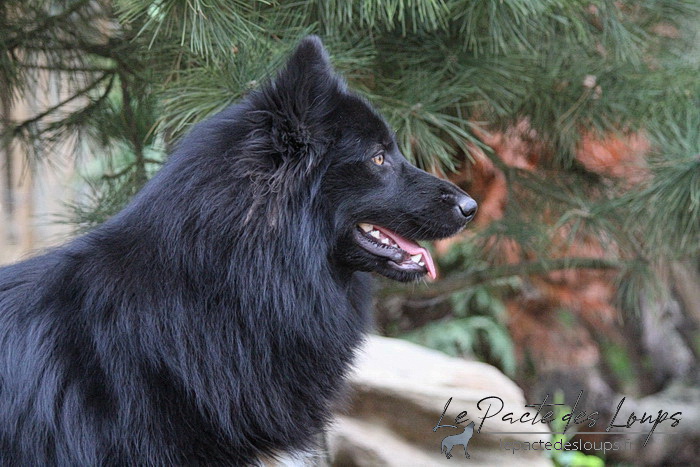 Ladyhawke est une magnifique chienne puissante dotée d'un superbe regard couleur or et d'une robe d'un noir profond très longue et fournie.