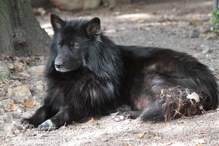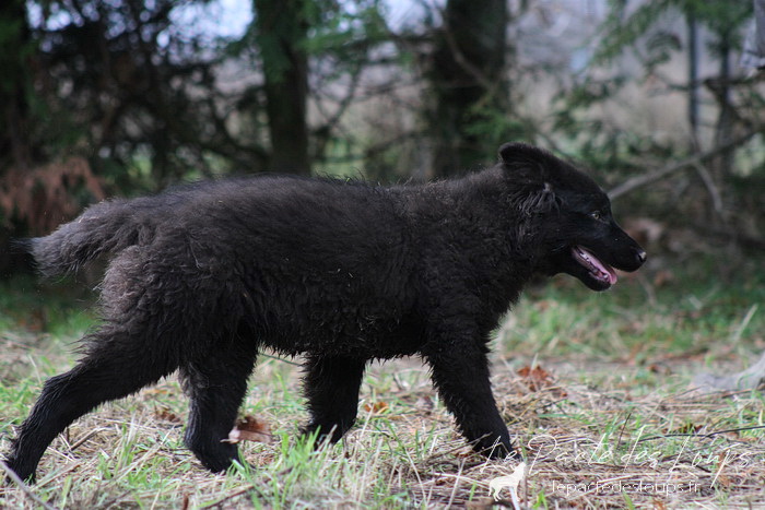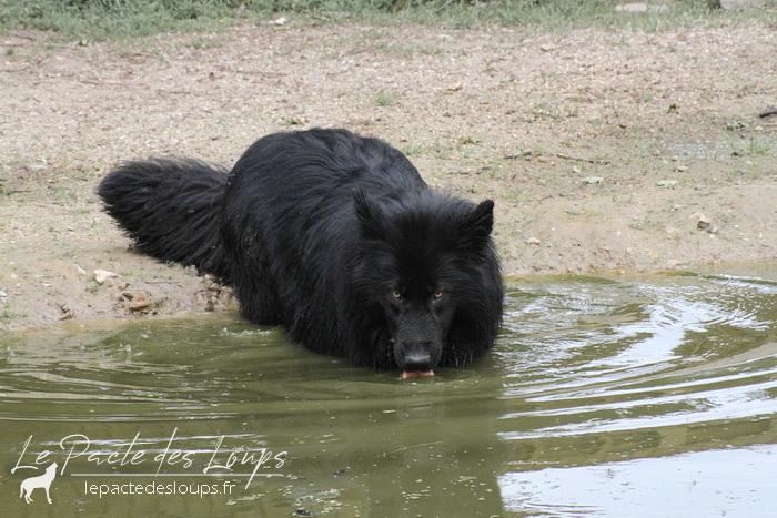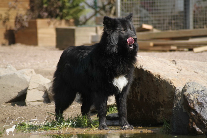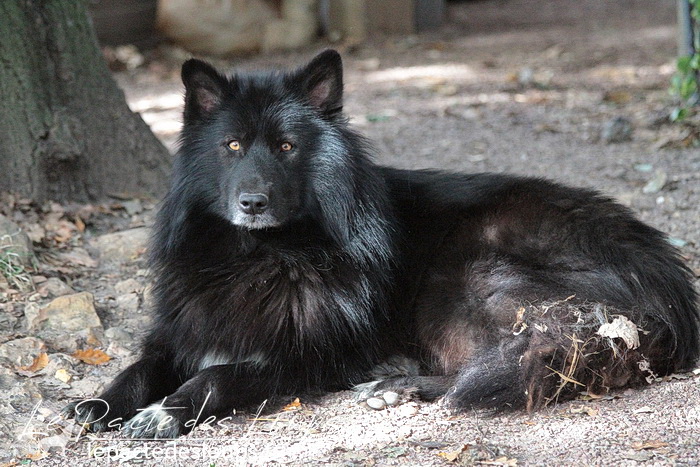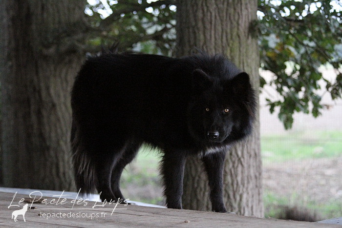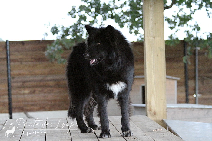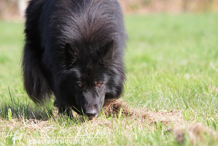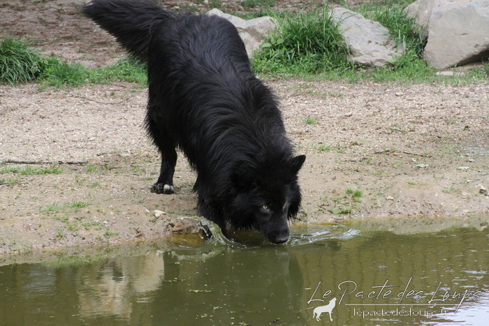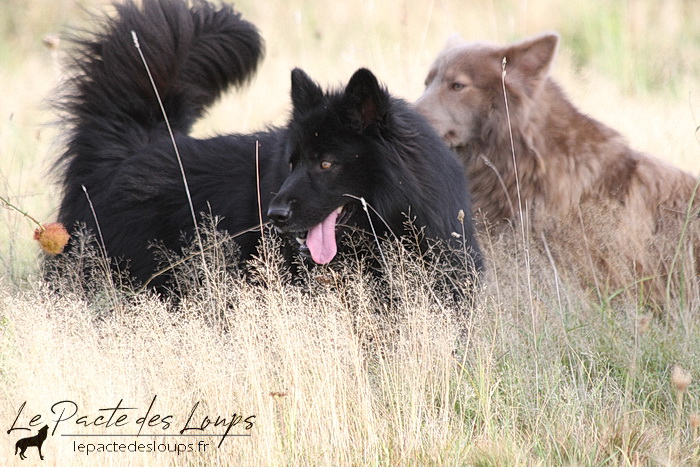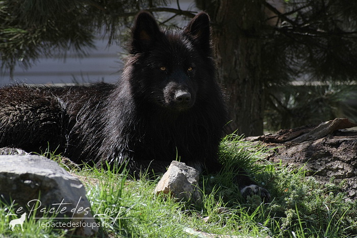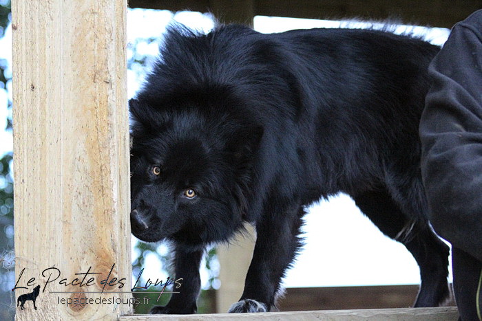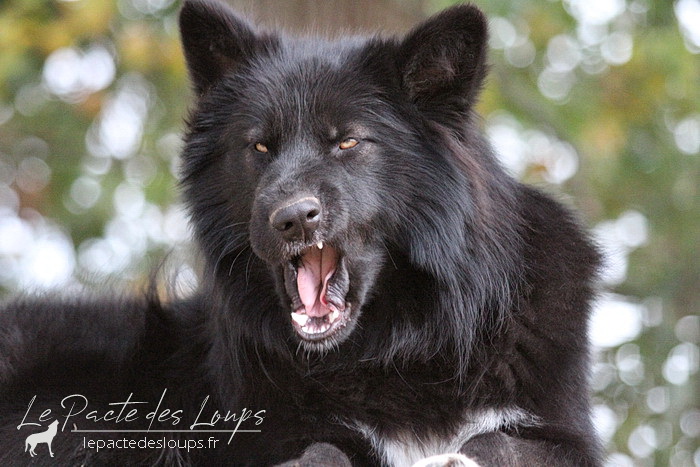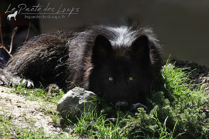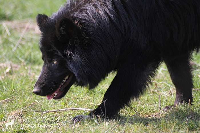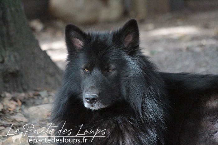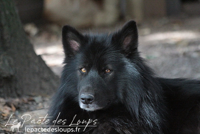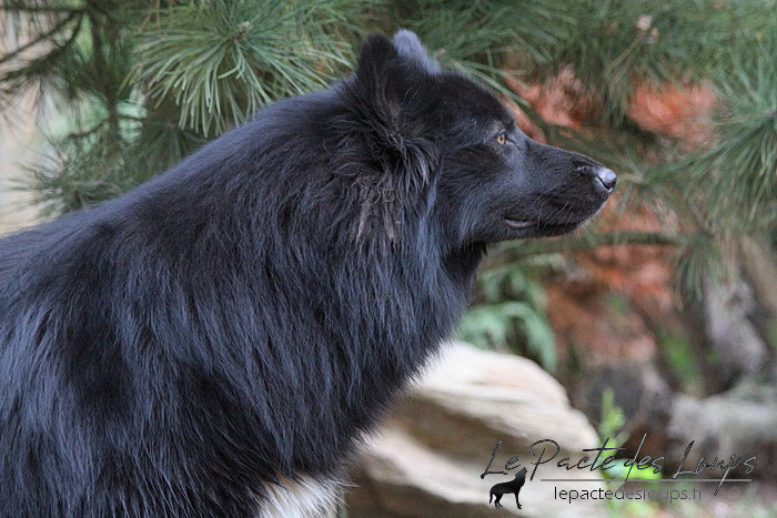 Ladyhawke est une magnifique chienne puissante dotée d'un superbe regard couleur or et d'une robe d'un noir profond très longue et fournie.