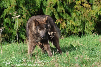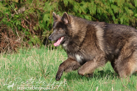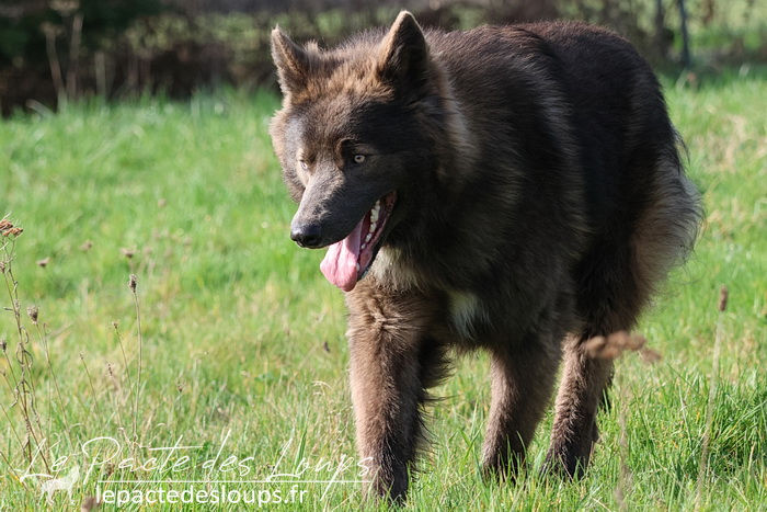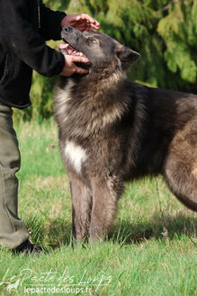 Mahone est un mâle puissant et de grand gabarit, avec une superbe robe très fournie et longue, et une couleur rare chez un chien-loup.