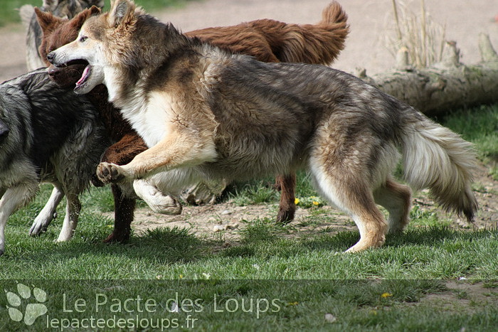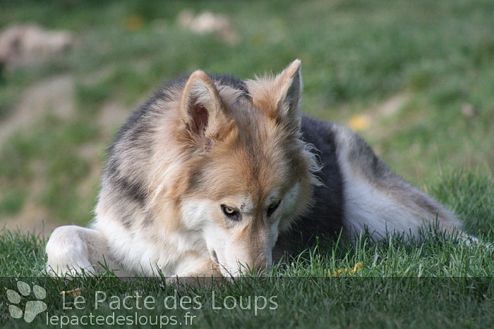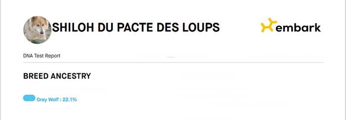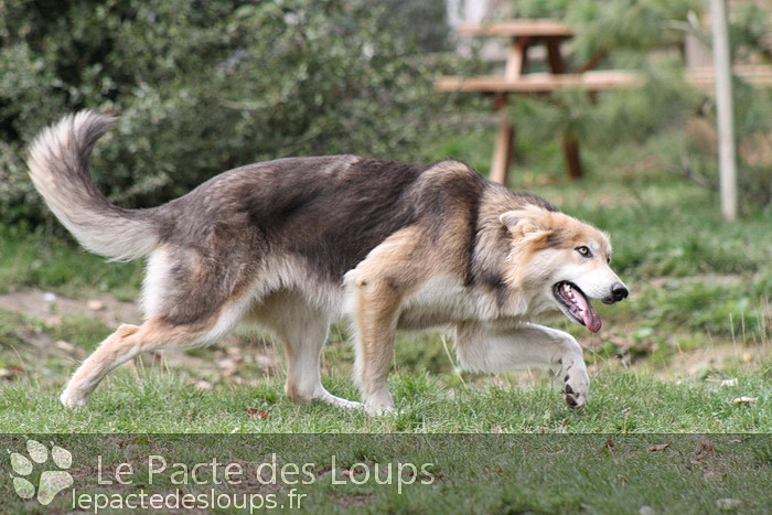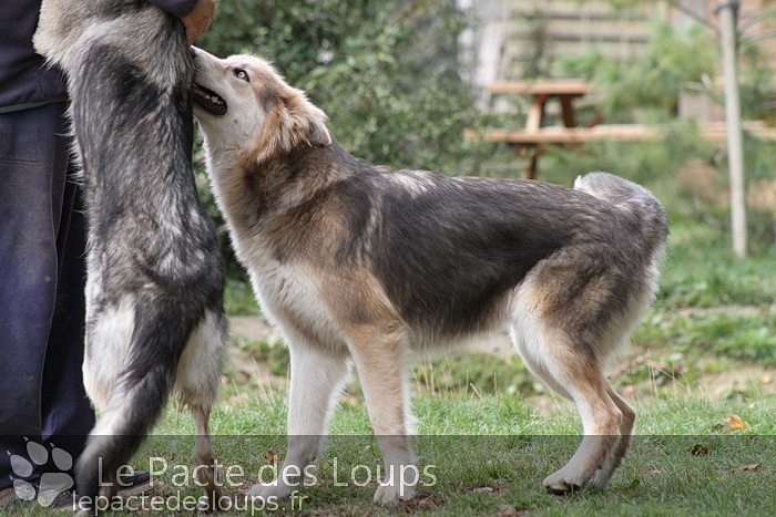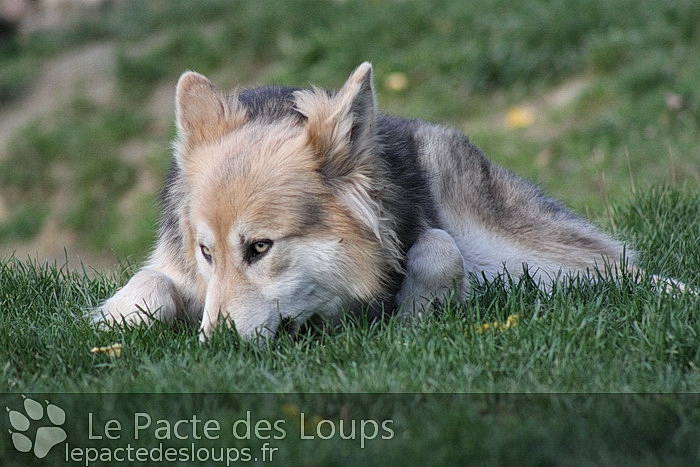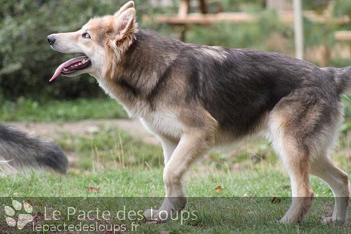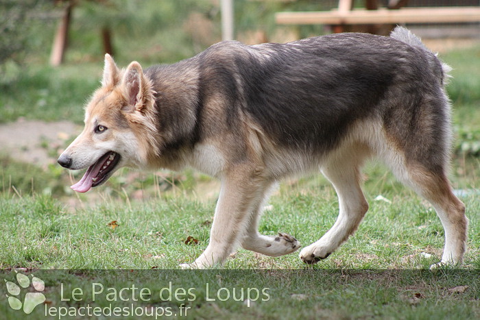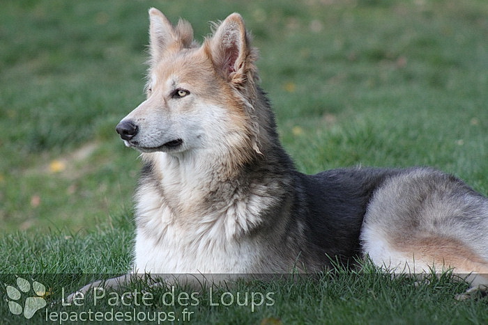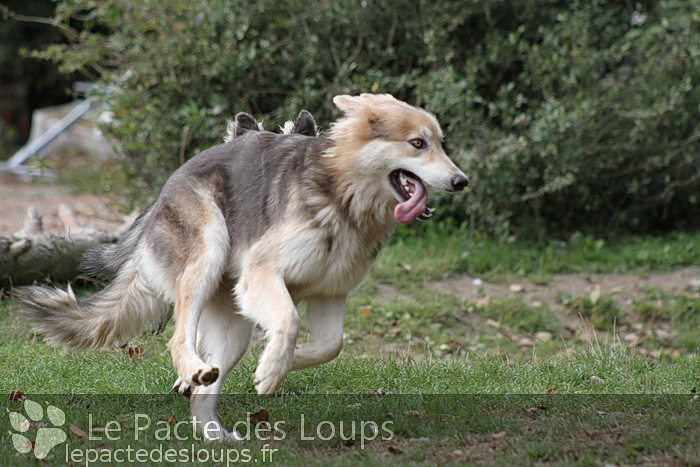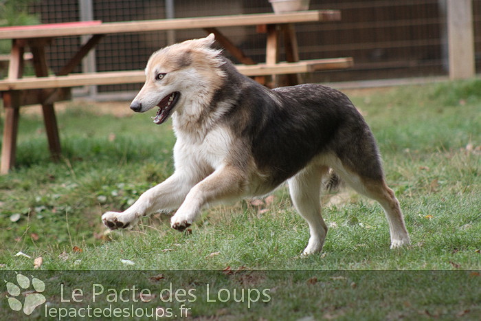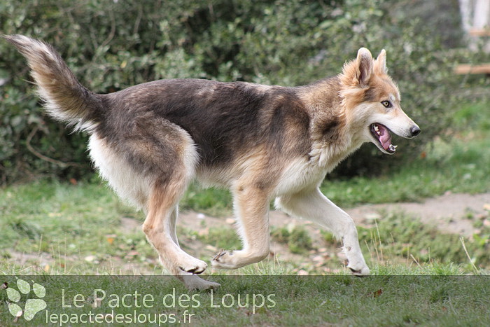 Shiloh est une grande chienne à la démarche très lupoïde, elle a des yeux hypnotisants et une très belle prestance C'est une adorable chienne, très attachante, elle vit très facilement en groupe et est très joueuse.